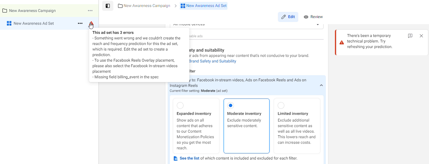 Absent Adplorer’s pre-set ad packages, even the most adept and organized multi-location Meta/Facebook managers can agree that the campaign creation system is complicated and confusing. Problems are abound everywhere as certain ad sets, campaign settings and ad content combinations generate cryptic error messages that require time consuming tweaks to resolve and launch correctly.